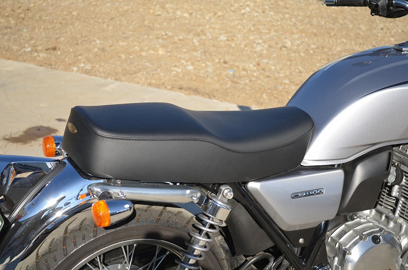 ※ご注文に際しては装着車両モデル・年式の確認が必要です。注文備考欄に入力をお願いします。適合車種:〜2016年 CB1100EX 17Lタンク・純正シートに対し座面の傾斜や幅、高さ、形状を見直したCB1100 17Lタンク専用シートです。・純正シートで膝や足元が窮屈に感じる方にお勧め。・型の中で発砲させたインジェクションスポンジを使用。クッション性が良く経年劣化が少ないため、長くご愛用頂けます。【ご注意】2018年までのCB1100については、『CB1100 14Lタンク』のカテゴリーからお選び下さい。シート裏側に書類入れはありません。【特徴】シート高:813mm(EX純正シート高785mm)・全体にプレーンブラックレザーを使用。縫い合わせのラインはステッチ仕上げ、縫い合わせラインが座面周囲をぐるりと一周するAタイプ。・タンデムベルトはボルト止めで標準装備。・取付は純正シート同様キーロック方式。・純正キャリア・トップボックスとの併用も可。