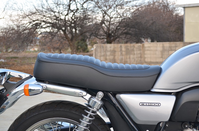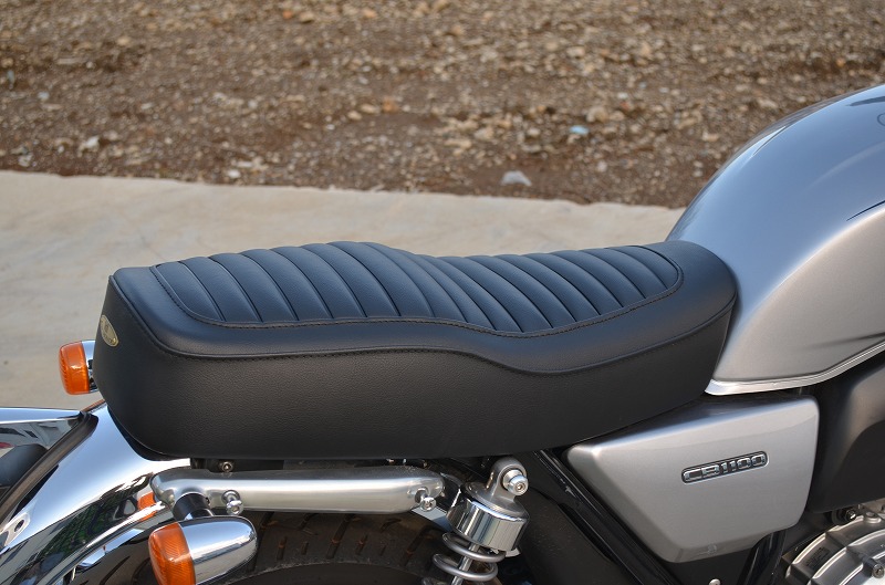 ※ご注文に際しては装着車両モデル・年式の確認が必要です。注文備考欄に入力をお願いします。適合車種:〜2016年 CB1100EX 17Lタンク・純正シートに対し座面の傾斜や幅、高さ、形状を見直したCB1100 17Lタンク専用シートです。・純正シートで膝や足元が窮屈に感じる方にお勧め。・型の中で発砲させたインジェクションスポンジを使用。クッション性が良く経年劣化が少ないため、長くご愛用頂けます。【ご注意】2018年までのCB1100については、『CB1100 14Lタンク』のカテゴリーからお選び下さい。シート裏側に書類入れはありません。【特徴】シート高:813mm(EX純正シート高785mm)・全座面中央ににプレーンブラックのタックロールをはめ込んでいます。縫い合わせのラインはステッチ仕上げ、縫い合わせラインが座面周囲をぐるりと一周するAタイプ。・タンデムベルトはボルト止めで標準装備。・取付は純正シート同様キーロック方式。・純正キャリア・トップボックスとの併用も可。