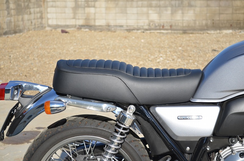 ※ご注文に際しては装着車両モデル・年式の確認が必要です。注文備考欄に入力をお願いします。適合車種:〜2016年 CB1100EX 17Lタンク・純正シートに対し座面の傾斜や幅、高さ、形状を見直したCB1100 17Lタンク専用シートです。・純正シートで膝や足元が窮屈に感じる方にお勧め。・型の中で発砲させたインジェクションスポンジを使用。クッション性が良く経年劣化が少ないため、長くご愛用頂けます。【ご注意】2018年までのCB1100については、『CB1100 14Lタンク』のカテゴリーからお選び下さい。シート裏側に書類入れはありません。【特徴】シート高:813mm(EX純正シート高785mm)・座面中央ににプレーンブラックのタックロールをはめ込んだデザイン。縫い合わせのラインはステッチ仕上げ、縫い合わせラインが途中で下に落ちるBタイプ。・タンデムベルトはボルト止めで標準装備。・取付は純正シート同様キーロック方式。・純正キャリア・トップボックスとの併用も可。