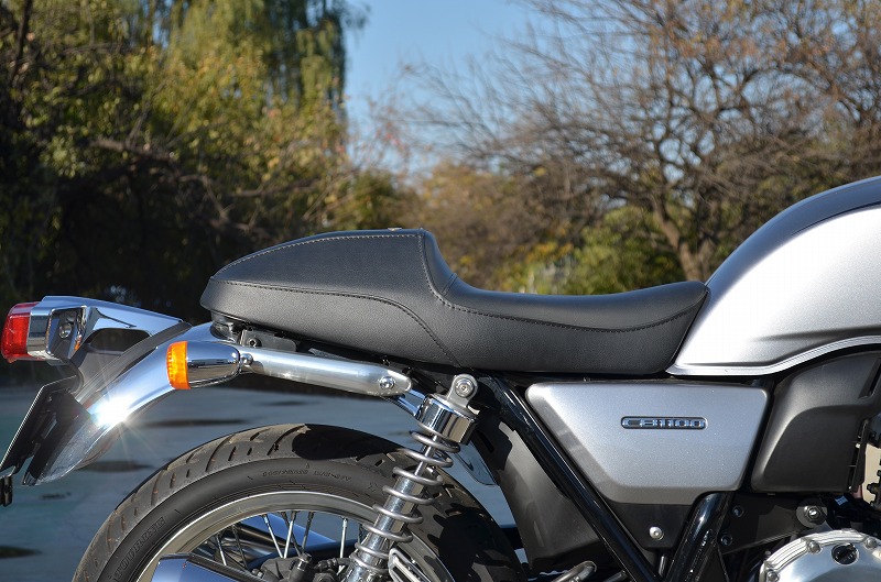 ・純正シートに対し座面の傾斜や幅、高さ、形状を見直したCB1100 17Lタンク専用シートです。