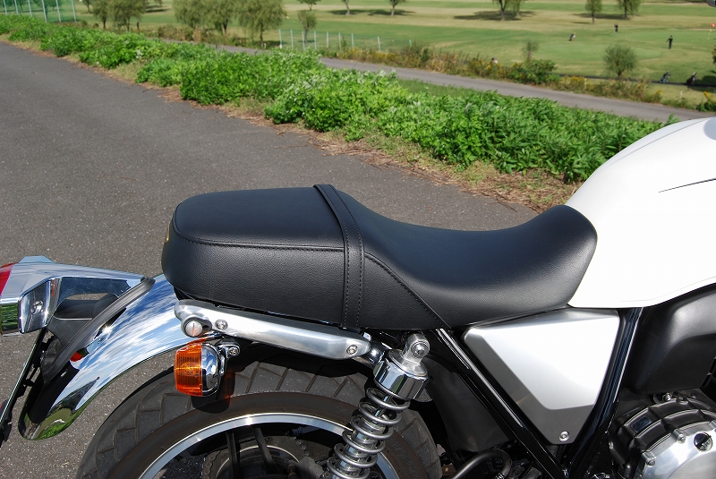 ※ご注文に際しては装着車両モデル・年式の確認が必要です。注文備考欄に入力をお願いします。適合車種:2010〜2018年 CB1100 14Lタンク・座面がカマボコ状になっている純正シートに対して、着座部分を平らにして、座面幅も広く取ってあります。その為お尻とシートの触れる部分が増え(面圧が下がり)お尻の負担を軽減します。※足を下ろす部分の幅は細くしてありますので、足つきは純正シートど同様です。・低床化した専用設計のシートベースを採用することにより充分なスポンジの厚みを確保してありますので、乗り心地も格段に向上しています。・独自のラバーマウント方式により路面からの突き上げや微振動が減り、お尻や体への負担を軽減します。・パッセンジャー側は充分なスポンジの幅と厚みを持たせてありますので、タンデムツーリングをする方には特にお勧めです。・型の中で発砲させたインジェクションスポンジを使用。クッション性が良く経年劣化が少ないため、長くご愛用頂けます。【ご注意】CB1100EXには装着できません。シート裏側に書類入れはありません。【特徴】シート高:765cm・シート全体にプレーンブラックレザーを使用。縫い合わせのラインはステッチ仕上げ、ラインが途中で下に落ちるBタイプ。・タンデムベルトはボルト止めで標準装備。・取付は純正シート同様キーロック方式。・純正キャリア・トップボックスとの併用も可。