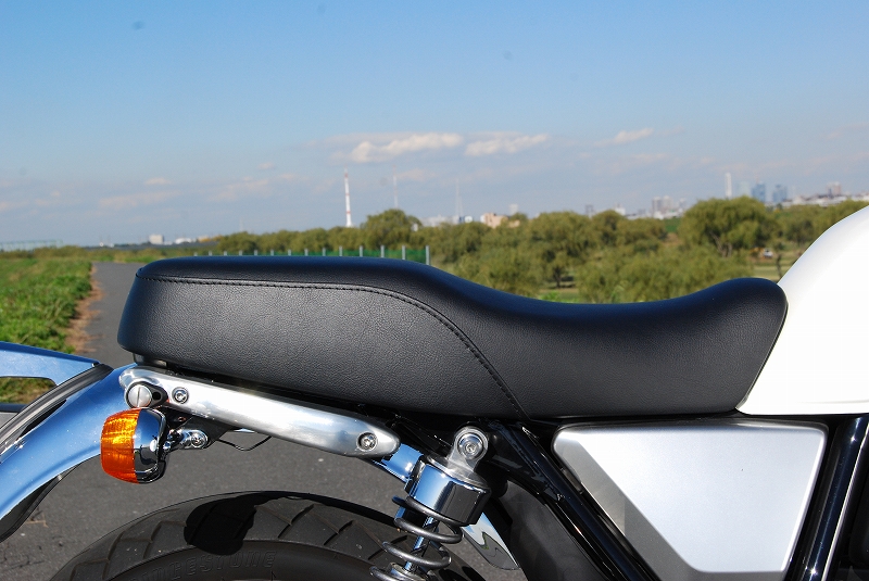 ※ご注文に際しては装着車両モデル・年式の確認が必要です。注文備考欄に入力をお願いします。適合車種:2010〜2018年 CB1100 14Lタンク・純正シートに比べシート高が32mmほど高くなっていますので、純正シートで膝や足元が窮屈に感じる方にお勧めです。ライダー側・パッセンジャー側ともに充分なスポンジの厚みと幅を持たせ、座面の傾斜も見直し。タンデムツーリングをする方にもお勧め、ソロツーリングの際は荷物の積載もし易くなります。・乗り心地が良くなるよう着座部分の幅はある程度確保し、足を下ろす部分は幅を細くしてありますので、足つきも良好です。・型の中で発砲させたインジェクションスポンジを使用。クッション性が良く経年劣化が少ないため、長くご愛用頂けます。【ご注意】CB1100EXには装着できません。シート裏側に書類入れはありません。【特徴】シート高:797cm・全体にプレーンブラックレザーを使用。縫い合わせのラインはステッチ仕上げ、ラインが途中で下に落ちるBタイプ。・タンデムベルトはボルト止めで標準装備。・取付は純正シート同様キーロック方式。・純正キャリア・トップボックスとの併用も可。
