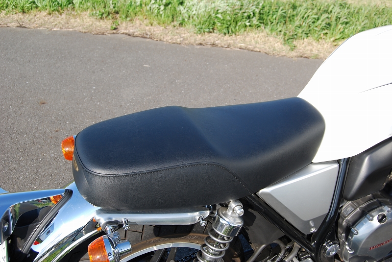 ※ご注文に際しては装着車両モデル・年式の確認が必要です。注文備考欄に入力をお願いします。適合車種:2010〜2018年 CB1100 14Lタンク・純正シートに比べシート高が48mmほど高くなっていますので、純正シートで膝や足元が窮屈に感じる方にお勧めです。ライダー側・パッセンジャー側ともに充分なスポンジの厚みと幅を持たせ、座面の傾斜も見直し。タンデムツーリングをする方にもお勧め、ソロツーリングの際は荷物の積載もし易くなります。・乗り心地が良くなるよう着座部分の幅はある程度確保し、足を下ろす部分は幅を細くしてありますので、足つきも良好です。・型の中で発砲させたインジェクションスポンジを使用。クッション性が良く経年劣化が少ないため、長くご愛用頂けます。【ご注意】CB1100EXには装着できません。シート裏側に書類入れはありません。【特徴】シート高:813cm・レザーは全てプレーンブラック。縫い合わせのラインはステッチ仕上げ、ラインが途中で下に落ちるBタイプ。・タンデムベルトはボルト止めで標準装備。・取付は純正シート同様キーロック方式。・純正キャリア・トップボックスとの併用も可。