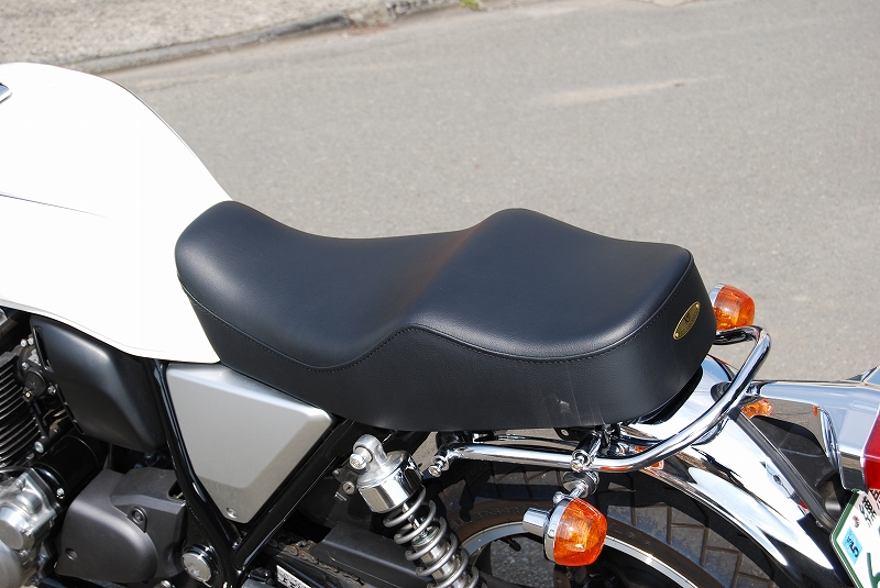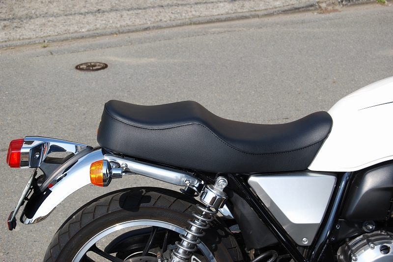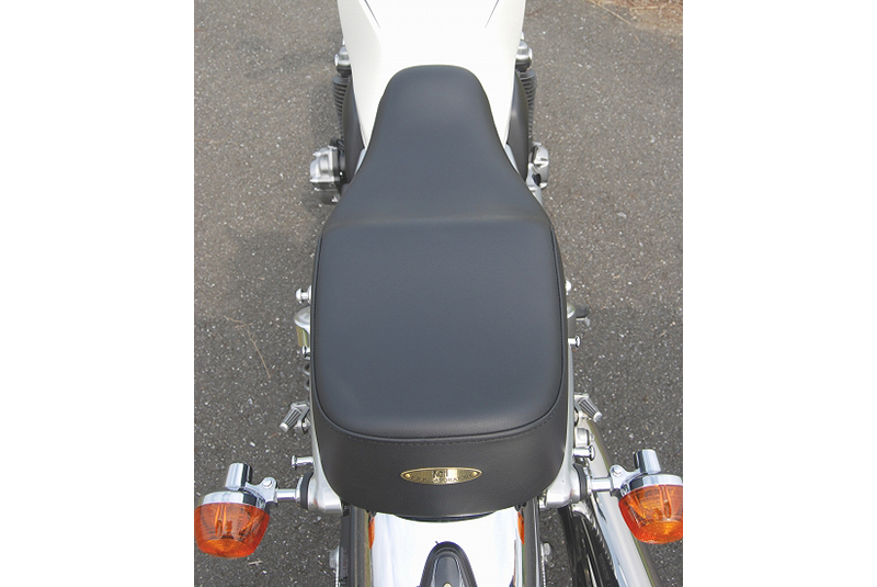 ※ご注文に際しては装着車両モデル・年式の確認が必要です。注文備考欄に入力をお願いします。適合車種:2010〜2018年 CB1100 14Lタンク・純正シートに比べシート高が32mmほど高くなっていますので、純正シートで膝や足元が窮屈に感じる方にお勧めです。ライダー側・パッセンジャー側ともに充分なスポンジの厚みと幅を持たせ、座面の傾斜も見直し。タンデムツーリングをする方にもお勧め、ソロツーリングの際は荷物の積載もし易くなります。・乗り心地が良くなるよう着座部分の幅はある程度確保し、足を下ろす部分は幅を細くしてありますので、足つきも良好です。・型の中で発砲させたインジェクションスポンジを使用。クッション性が良く経年劣化が少ないため、長くご愛用頂けます。【ご注意】CB1100EXには装着できません。シート裏側に書類入れはありません。【特徴】シート高:797cm・全体にプレーンブラックレザーを使用。縫い合わせのラインはステッチ仕上げ、ラインが座面周囲を囲むAタイプ。・タンデムベルトはボルト止めで標準装備。・取付は純正シート同様キーロック方式。・純正キャリア・トップボックスとの併用も可。