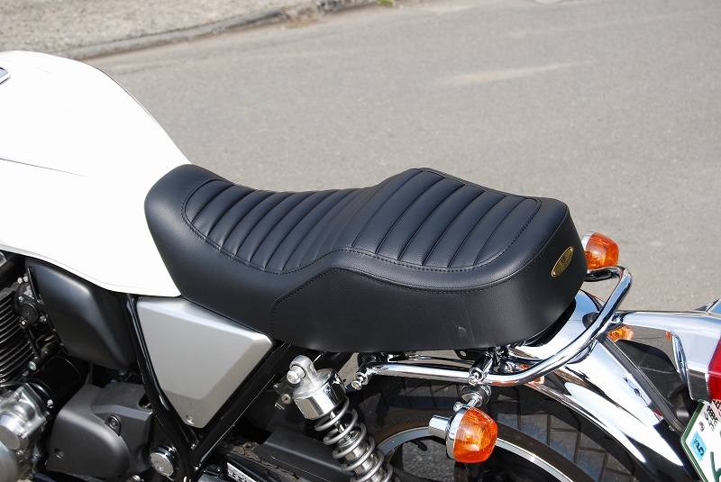 ※ご注文に際しては装着車両モデル・年式の確認が必要です。注文備考欄に入力をお願いします。適合車種:2010〜2018年 CB1100 14Lタンク・純正シートに比べシート高が32mmほど高くなっていますので、純正シートで膝や足元が窮屈に感じる方にお勧めです。ライダー側・パッセンジャー側ともに充分なスポンジの厚みと幅を持たせ、座面の傾斜も見直し。タンデムツーリングをする方にもお勧め、ソロツーリングの際は荷物の積載もし易くなります。・乗り心地が良くなるよう着座部分の幅はある程度確保し、足を下ろす部分は幅を細くしてありますので、足つきも良好です。・型の中で発砲させたインジェクションスポンジを使用。クッション性が良く経年劣化が少ないため、長くご愛用頂けます。【ご注意】CB1100EXには装着できません。シート裏側に書類入れはありません。【特徴】シート高:797cm・座面中央にプレーンブラックのタックロールを使用。縫い合わせのラインはステッチ仕上げ、ラインが途中で下に落ちるBタイプ。・タンデムベルトはボルト止めで標準装備。・取付は純正シート同様キーロック方式。・純正キャリア・トップボックスとの併用も可。