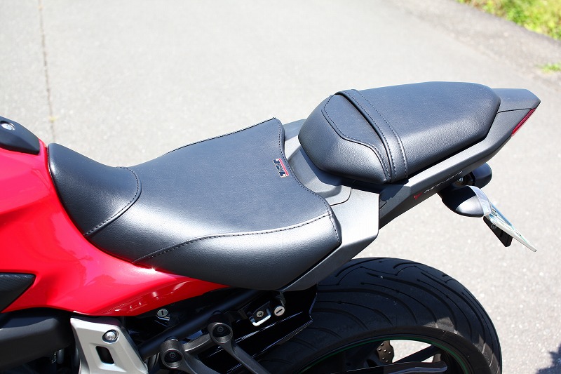 シートベースから専用品となり、タンクカバーやサイドカウルとのチリも均一で車格が上がったように見えます。