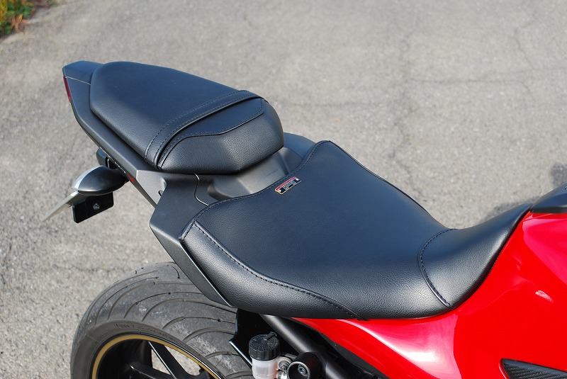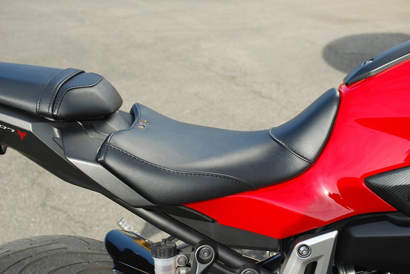 ※ご注文に際しては装着車両モデル・年式の確認が必要です。注文備考欄に入力をお願いします。適合車種:2014〜2017年 MT-07純正標準シートと同程度の足つき性を確保しつつ、乗り心地の良いシートとなっております。シートベースから専用設計することにより、純正シートに比べスポンジの厚みを確保しています。前下がりな座面の傾斜を水平にしています。純正シートはシート後方の中央部分が窪んでいる為、後ろ目に乗車した際に違和感を感じますが、その辺りも座面形状を工夫し改善されています。タンクカバーやサイドカウルとのチリも均一で車格が上がったように見えます。純正シートの様にスポンジ部分をめくっての取り付けでなく、付属の専用取り付けステーを使用して装着となります。型の中で発砲させたイジェクションスポンジを使用していますから、クッション性良く経年変化が少ない為、長くご愛用いただけます。縫い目は全てステッチ仕上げ。【シート高】・K&Hローシート:805mm・純正シート:805mm