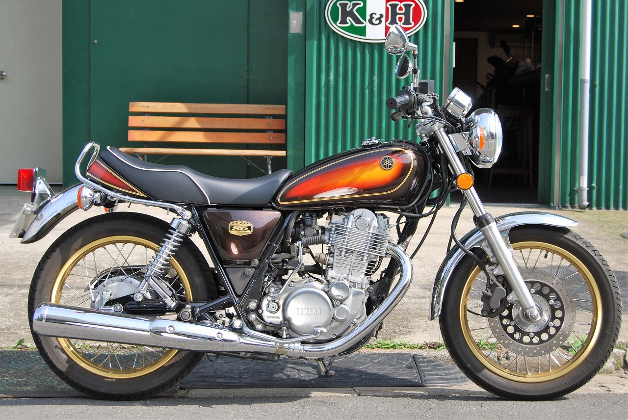 ※ご注文に際しては装着車両モデル・年式の確認が必要です。注文備考欄に入力をお願いします。適合車種: SR400全年式(78年モデルを除く)キャブレター / FIの全年式に装着可能な純正シートカウルが装着出来る段付きシートです。1978年式の初期型モデルには装着不可。型の中で発砲させたインジェクションスポンジを使用。クッション性が良く経年劣化が少ないため、長くご愛用頂けます。【シート高】770mm(純正シート 790mm)【特徴】レザー全体はプレーンブラックを使用、縫い合わせのラインはパイピングで仕上げています。ステッチラインが途中弧を描いて下に落ちるBタイプです。【装着】車体への取り付けには純正シートからシートダンパーを移設する必要があります。ガソリンタンク側に付属の取り付けステーを装着し、後ろ側は純正シートと同様純正シートボルトで固定します。純正グラブレールやK&H社製リアフェンダーとの併用も可能です。ワイズギア製キャリアと併用する場合は、取り付け金具を逆さ付けする必要があります。【ご注意】シートカウルは付属しませんのでお手持ちの純正シートから移設してご使用ください。キャブレターモデル用のカウル使用の場合は、カウル側の取り付け穴を3mmほど長穴加工する必要があります。