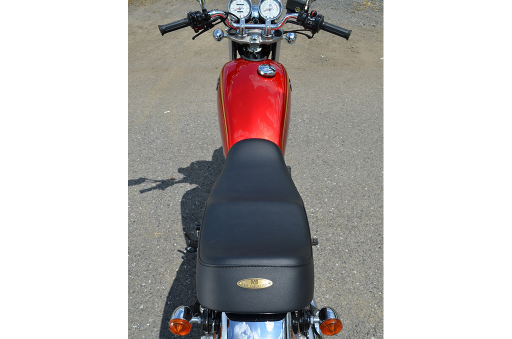 ※ご注文に際しては装着車両モデル・年式の確認が必要です。注文備考欄に入力をお願いします。適合車種:2010〜2020年 SR400 FI型の中で発砲させたインジェクションスポンジを使用。クッション性が良く経年劣化が少ないため、長くご愛用頂けます。【シート高】760mm(純正シート 790mm)【特徴】シート高は純正シート -30mm。レザー全体はプレーンブラックを使用、縫い合わせのラインはステッチで仕上げています。ステッチラインが1周するAタイプです。車体への取付はガソリンタンク側に付属の取り付けステーを装備し、後ろ側を純正シートと同様純正シートボルトで固定します。純正グラブレールやK&H社製リアフェンダーとの併用も可能です。【ご注意】取り付けには純正シートからシートダンパーを移設する必要があります。