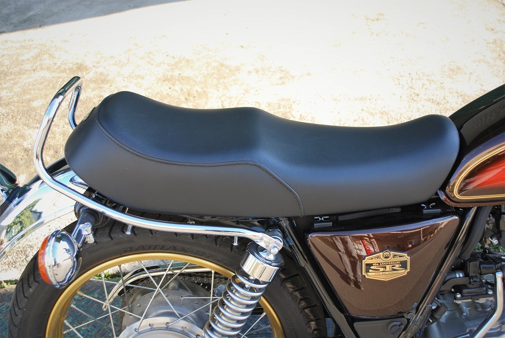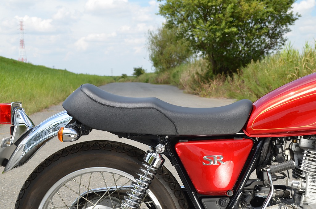 ※ご注文に際しては装着車両モデル・年式の確認が必要です。注文備考欄に入力をお願いします。適合車種:2010〜2020年 SR400 FI型の中で発砲させたインジェクションスポンジを使用。クッション性が良く経年劣化が少ないため、長くご愛用頂けます。【シート高】760mm(純正シート 790mm)【特徴】シート高は純正シート -30mm。レザー全体はプレーンブラックを使用、縫い合わせのラインはステッチで仕上げています。ステッチラインが途中で下に落ちるBタイプです。車体への取付はガソリンタンク側に付属の取り付けステーを装備し、後ろ側を純正シートと同様純正シートボルトで固定します。純正グラブレールやK&H社製リアフェンダーとの併用も可能です。【ご注意】取り付けには純正シートからシートダンパーを移設する必要があります。
