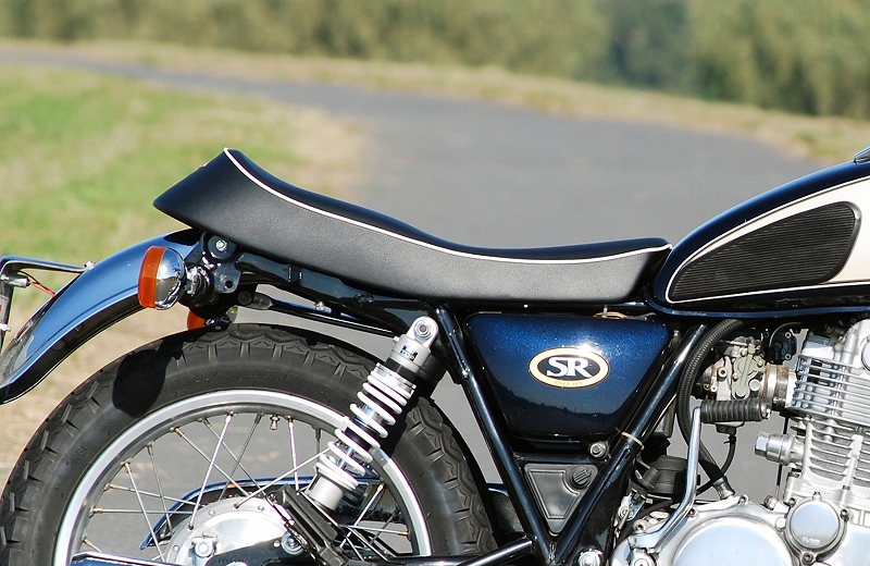 ※ご注文に際しては装着車両モデル・年式の確認が必要です。注文備考欄に入力をお願いします。適合車種:〜2009年 SR400/500厚みはノーマルの半分位の薄さですが、スポンジに弾力があるので、底づきしません。シートの後部がほんの少し盛り上がっています。取り付けはノーマルのシートダンパー、ボルトを使用します。高品質のインジェクションスポンジを使用していますから、適度はコシと柔らかさを保っています。型くずれせず、長くご愛用いただけます。【サイズ】縦63cm 横28cm スポンジ厚み5cm【特徴】:縫い合わせラインが座面周囲を一周しているAタイプです。縫い合わせラインには白のパイピングを挟み込んでいます。