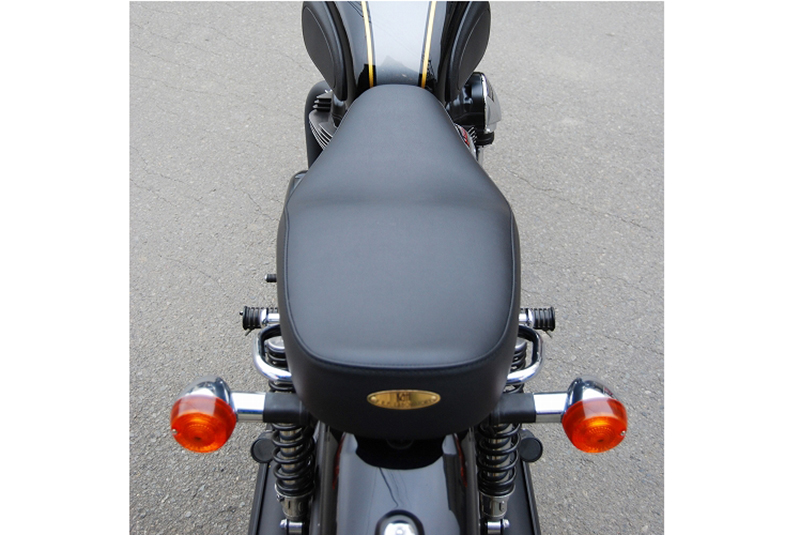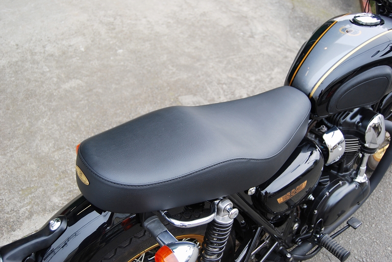 ※ご注文に際しては装着車両モデル・年式の確認が必要です。注文備考欄に入力をお願いします。適合車種: W650ライダー側・パッセンジャー側ともに充分なスポンジの厚みと幅を持たせ、座面の傾斜も見直し。タンデムツーリングをする方にもお勧め、ソロツーリングの際は荷物の積載もし易くなります。乗り心地が良くなるよう着座部分の幅はある程度確保し、足を下ろす部分は幅を細くしてありますので、足つきも良好です。型の中で発砲させたインジェクションスポンジを使用。クッション性が良く経年劣化が少ないため、長くご愛用頂けます。【ご注意】純正オプションのグラブレール、キャリアとの併用可。【特徴】※シート高:800mm(※W800メーカー諸元シート高790mm)※シートサイズ:660mm(縦)290mm(横)80mm(スポンジ厚み)シート全体にプレーンブラックレザーを使用。縫い合わせのラインはステッチ仕上げ、ラインが座面周囲を囲むAタイプ。タンデムベルトはボルト止めで標準装備。シートはノーマルの取付金具・ボルトを使用し、ボルトオンで装着。純正のキーロック使用可能。