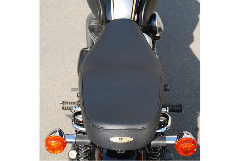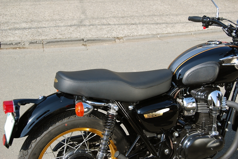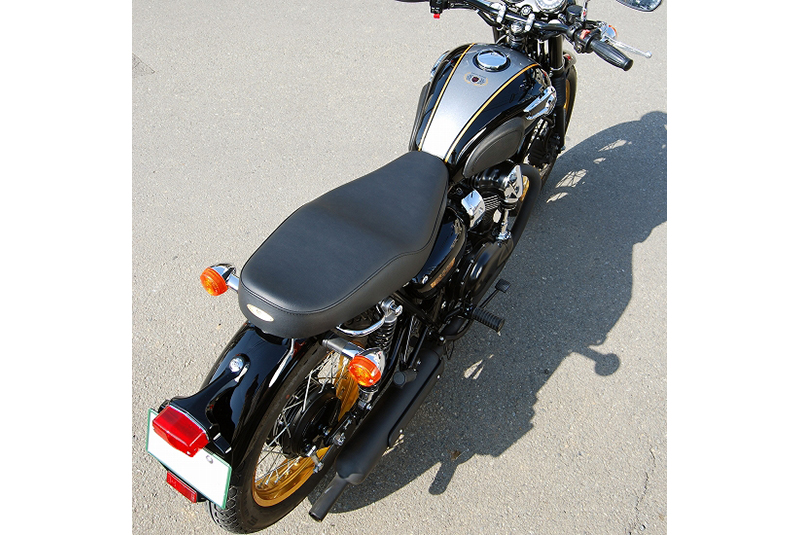 ※ご注文に際しては装着車両モデル・年式の確認が必要です。注文備考欄に入力をお願いします。適合車種: W650ライダー側・パッセンジャー側ともに充分なスポンジの厚みと幅を持たせ、座面の傾斜も見直し。タンデムツーリングをする方にもお勧め、ソロツーリングの際は荷物の積載もし易くなります。乗り心地が良くなるよう着座部分の幅はある程度確保し、足を下ろす部分は幅を細くしてありますので、足つきも良好です。型の中で発砲させたインジェクションスポンジを使用。クッション性が良く経年劣化が少ないため、長くご愛用頂けます。【ご注意】純正オプションのグラブレール、キャリアとの併用可。【特徴】※シート高:815mm(※W800メーカー諸元シート高790mm)※シートサイズ:660mm(縦)290mm(横)95mm(スポンジ厚み)シート全体にプレーンブラックレザーを使用。縫い合わせのラインはステッチ仕上げ、ラインが座面周囲を囲むAタイプ。タンデムベルトはボルト止めで標準装備。シートはノーマルの取付金具・ボルトを使用し、ボルトオンで装着。純正のキーロック使用可能。