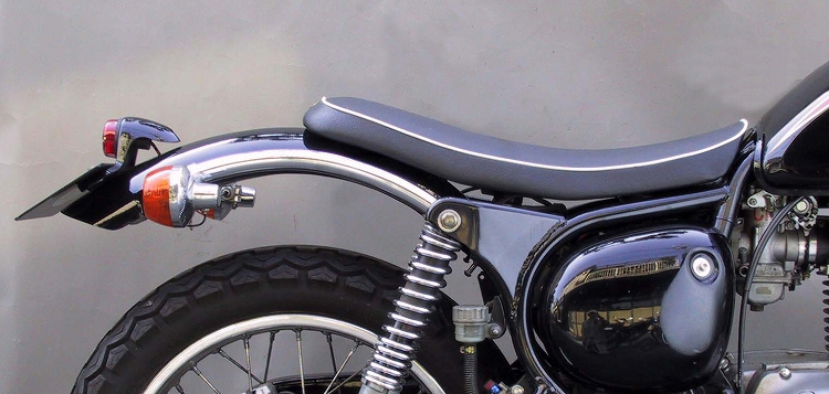 ※ご注文に際しては装着車両モデル・年式の確認が必要です。注文備考欄に入力をお願いします。適合車種:〜2006年 エストレヤRS(シートキーロックタイプ) ボルト止め車輌不可【ご注意】このシートは2007年以降のインジェクション車両には装着できません。リアフェンダーはノーマル、K&H製のどちらでも取り付けられます。シートは全てF.R.P.製の底板にインジェクションスポンジで成形。取り付けに必要なボルト類は全て付属しています。ノーマルの状態でボルトオンで装着できます。高品質のインジェクションスポンジを使用していますから、適度はコシと柔らかさを保っています。型くずれせず、長くご愛用いただけます。【特徴】:縫い合わせラインが座面周囲を一周するAタイプ、縫い合わせラインには白パイピングが挟み込んであります。シート幅はかなりスリム、長さはショートシートと 同じ短かめのシートです。【サイズ】縦55m 横22cm スポンジ厚み4.5cm