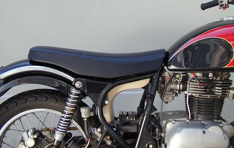 ※ご注文に際しては装着車両モデル・年式の確認が必要です。注文備考欄に入力をお願いします。適合車種:〜2006年 エストレヤ(シートボルト止め車輌適合※RS不可【ご注意】このシートは2007年以降のインジェクション車両には装着できません。リアフェンダーはノーマル、K&H製のどちらでも取り付けられます。シートは全てF.R.P.製の底板にインジェクションスポンジで成形。取り付けに必要なボルト類は全て付属しています。ノーマルの状態でボルトオンで装着できます。十分な強度がありますから、タンデム走行もできます。高品質のインジェクションスポンジを使用していますから、適度はコシと柔らかさを保っています。型くずれせず、長くご愛用いただけます。【特徴】:縫い合わせラインが座面周囲を一周するAタイプ、縫い合わせラインには白パイピングが挟み込んであります。純正のシートより少し短かめですが、ゆっくり タンデムできる長さがあります【サイズ】縦63m 横28cm スポンジ厚み7cm