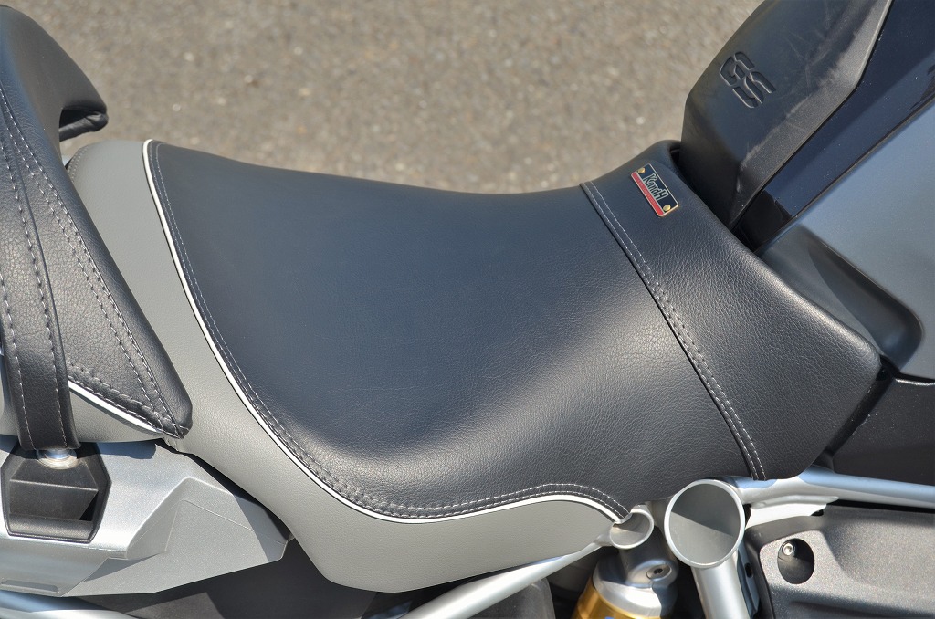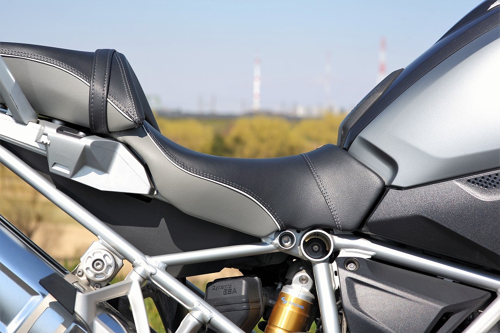 純正シートは前傾斜が強く、長時間走るとどうしても一番低い位置に着座しがちになります。後ろ上がりの座面で尾てい骨辺りに痛みを感じる事もあります。