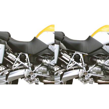 ※ご注文に際しては装着車両モデル・年式の確認が必要です。注文備考欄に入力をお願いします。適合車種:〜2012年 空冷R1200GS/アドベンチャーK&H製シートはシートベースから専用設計し、独自の取付けステーに変更することにより、足を下ろす部分がフレーム幅近くまで絞り込まれています。日本標準仕様の純正シートと同等のシート高ですが、足を真っすぐに下ろすことができます。その為、足付きはほぼ純正シートと同等となり、車体は支えやすくなっています。咄嗟の時には瞬時に足を出すことができるようになります。長距離でも快適なライディングのできるシートで仕上がっています。純正シートに対し、座面の傾斜を見直すことにより、着座位置の変更が容易になります。ニーグリップがし易くなるようにシートの前側の形状が工夫されています。・型の中で発砲させたインジェクションスポンジを使用。クッション性が良く経年劣化が少ないため、長くご愛用頂けます。※R1200GS ADVにも装着可能です。■シート高:840mm/860mmADV装着時シート高:850mm/870mmノーマルシートに準じた2段階の高さ調整が可能。【ご注意】フレーム側にもヘルメットホルダーのパイプがある年式の車両はパイプを5mm程度内側に曲げる必要があります。パイプは指で曲げられる程度の硬さです。バッテリー上のガソリン後側書類挟み部分にETCが設置されていると、シートベースと干渉してシートの装着ができません。シート装着にはETCを純正工具箱等への移設が必要になります。