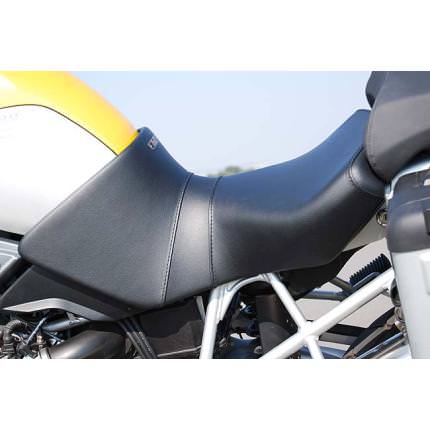 ※ご注文に際しては装着車両モデル・年式の確認が必要です。注文備考欄に入力をお願いします。適合車種:〜2012年 空冷R1200GS/アドベンチャーK&H製シートはシートベースから専用設計し、独自の取付けステーに変更することにより、足を下ろす部分がフレーム幅近くまで絞り込まれています。日本標準仕様の純正シートより20mm座面が低くなってはいますので、足付きが良くなり、車体は支えやすくなっています。咄嗟の時には瞬時に足を出すことができるようになり、長距離でも快適なライディングのできるシートで仕上がっています。純正シートに対し、座面の傾斜を見直すことにより、着座位置の変更が容易になります。ニーグリップがし易くなるようにシートの前側の形状が工夫されています。・型の中で発砲させたインジェクションスポンジを使用。クッション性が良く経年劣化が少ないため、長くご愛用頂けます。※R1200GS ADVにも装着可能です。■シート高:820mm/840mmADV装着時シート高:830mm/850mmノーマルシートに準じた2段階の高さ調整が可能。【ご注意】フレーム側にもヘルメットホルダーのパイプがある年式の車両はパイプを5mm程度内側に曲げる必要があります。パイプは指で曲げられる程度の硬さです。バッテリー上のガソリン後側書類挟み部分にETCが設置されていると、シートベースと干渉してシートの装着ができません。シート装着にはETCを純正工具箱等への移設が必要になります。