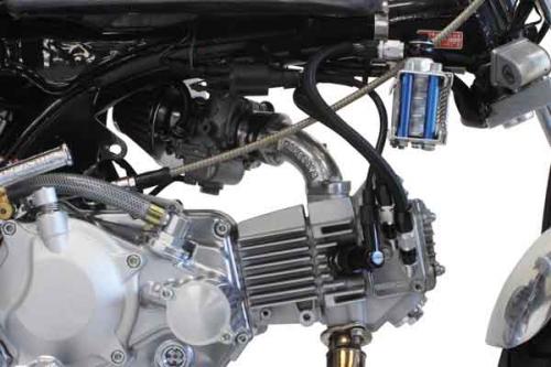 オイルクーラー本体はオイルクーラーステーとクランプバンドを使用し、フレーム下に固定します。段数とオイルライン数:3フィン4オイルラインオイル取出し口は対象シリンダーヘッドのR.サイドカバーをオイルクーラーユニットに変更し、シリンダーヘッドからオイルを取出します。■ブレードホース #4小型車に最適な外径Φ11mmサイズを採用したナイロンブレードホースです。又、内径Φ5.6mmを採用している為、オイルポンプへの負担を軽減します。ナイロンブレードホースは軽量で柔軟性がある為、取回しの自由度に優れております。装着時、ブラックブレードホースが車両を引き締めます。■コンパクトクール本体クーラー本体は冷却効果に優れたコンパクトクールを採用。オイルクーラーを取付けることで、エンジンボアアップに伴う油温上昇を抑えることが出来ます。オイルクーラープレート、ガードが標準装備。■注意事項タペットキャップブリーザーパイプとの同時装着が出来ません。モンキー(インジェクション車)には取付け出来ません。取付けにはフレームに溶接されているハーネス用リングを曲げるか切り取りが必要です。オイル量は通常規定オイル量に3フィン:約40ccを追加して下さい。