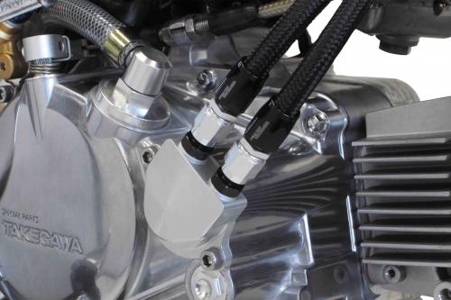 オイルクーラー本体はオイルクーラーステーとクランプバンドを使用し、フレーム下に固定します。オイル取出し口はSP武川製スペシャルクラッチカバー(各種フィルター付き)、又は乾式クラッチ(2型)にあるオイルフィルターカバーに付属のオイルクーラーユニットを装着し、オイルを取出します。■ブレードホース #4小型車に最適な外径Φ11mmサイズを採用したナイロンブレードホースです。又、内径Φ5.6mmを採用している為、オイルポンプへの負担を軽減します。ナイロンブレードホースは軽量で柔軟性がある為、取回しの自由度に優れております。装着時、ブラックブレードホースが車両を引き締めます。■コンパクトクール本体クーラー本体は冷却効果に優れたコンパクトクールを採用。オイルクーラーを取付けることで、エンジンボアアップに伴う油温上昇を抑えることが出来ます。オイルクーラープレート、ガードが標準装備。コンパクトクール本体は3フィン4オイルラインと4フィン5オイルラインからお選び頂けます。■注意事項■オイルクーラー本体をフレーム下に取り付ける場合の注意事項(すべてSP武川製品に限ります)※SP武川製ノーマル・レギュラー・Rステージ・RステージEM/+D・17RステージE/+Dヘッド用タペットブリーザーの同時装着についてタペットブリーザーと同時装着できるオイルクーラー本体は3フィンのみになります。3フィンオイルクーラーと同時装着できるタペットブリーザー:90°スイベルタイプ(07-06-0002)※他のタペットブリーザー同時装着不可ヘッドブリーザーが必要な場合は、ブリーザーパイプ付きシリンダーヘッドカバーをお買い求めください。(3フィン/4フィン同時装着可能)※SP武川製スーパーヘッド4V+Rヘッドキットに付属のタペットブリーザーの同時装着についてオイルクーラー本体をフレーム下に装着する場合、付属のタペットブリーザーと同時装着できるオイルクーラー本体は3フィンのみになります。※DOHC4V/4V+Dヘッド・デスモ4VヘッドとSP武川製オイルクーラー本体(フレーム下装着の場合)は同時装着できません。※取付けにはフレームに溶接されているハーネス用リングを曲げるか切り取りが必要です。※ノーマルフロントフォークの場合、SP武川製ステアリングダンパーキットとの同時装着はできません。■その他注意事項※本製品を装着した場合、ノーマルマフラー及びアップマフラーの同時装着ができません。※SP武川製スペシャルクラッチ(砂型鋳造製・ダイカスト・TYPE-R WET/DRY)、又は乾式クラッチ(2型 ver.1/ver.2)装着車が対象です。SP武川製コンプリートエンジン(プライマリー式)に採用しているスペシャルクラッチ(ダイカスト)にも取り付け可能です。※SP武川製スペシャルクラッチ(ダイカスト)装着車の場合、オイルホールプラグ、又はサーモスタットユニットの同時はできません。同時装着を行うと重大なエンジントラブルになります。※オイル量は通常規定オイル量に3フィン:約40cc/4フィン:約60ccを追加して下さい。