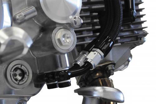オイル取出し口はSP武川製スペシャルクラッチカバー(ダイカスト)にあるオイル取り出し口にバンジョー、バンジョーボルトを装着し、オイルを取出します。