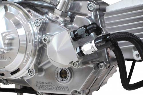 オイルクーラー本体はSP武川製スーパーヘッド4V+Rシリンダーヘッドのインスペクションカバー部にブラケットを装着し、オイルクーラーを取付けます。オイル取出し口はSP武川製スペシャルクラッチカバー(各種フィルター付き)、又は乾式クラッチ(2型)にあるオイルフィルターカバーに付属のオイルクーラーユニットを装着し、オイルを取出します。■ブレードホース #4小型車に最適な外径Φ11mmサイズを採用したナイロンブレードホースです。又、内径Φ5.6mmを採用している為、オイルポンプへの負担を軽減します。ナイロンブレードホースは軽量で柔軟性がある為、取回しの自由度に優れております。装着時、ブラックブレードホースが車両を引き締めます。■コンパクトクール本体クーラー本体は冷却効果に優れたコンパクトクールを採用。オイルクーラーを取付けることで、エンジンボアアップに伴う油温上昇を抑えることが出来ます。オイルクーラープレート、ガードが標準装備。コンパクトクール本体は3フィン4オイルラインと4フィン5オイルラインからお選び頂けます。■注意事項※SP武川製スーパーヘッド4V+R装着車専用です。※SP武川製スペシャルクラッチ(砂型鋳造製・ダイカスト・TYPE-R WET/DRY)、又は乾式クラッチ(2型 ver.1/ver.2)装着車が対象です。SP武川製コンプリートエンジン(プライマリー式)に採用しているスペシャルクラッチ(ダイカスト)にも取り付け可能です。※SP武川製スペシャルクラッチ(ダイカスト)装着車の場合、オイルホールプラグ、又はサーモスタットユニットの同時はできません。同時装着を行うと重大なエンジントラブルになります。■その他注意事項※ノーマルマフラー、及びアップマフラーの同時装着は出来ません。※オイル量は通常規定オイル量に3フィン:約40ccを追加して下さい。