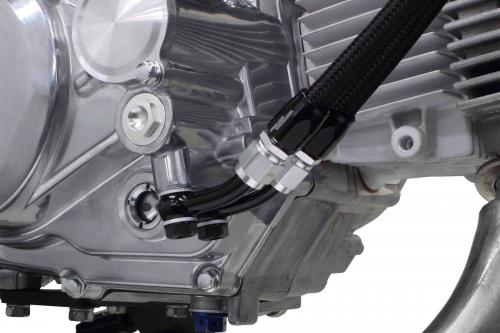 オイル取出し口はSP武川製スペシャルクラッチカバー(ダイカスト)にあるオイル取り出し口にバンジョー、バンジョーボルトを装着し、オイルを取出します。