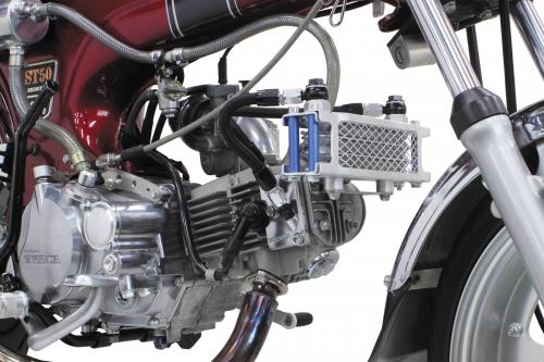 オイルクーラーを取付けることで、エンジンボアアップに伴う油温上昇を抑えることが出来ます。