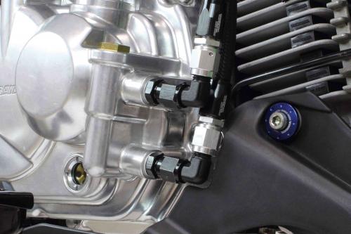 SP武川社製スペシャルクラッチカバーとSP武川社製ビッグスロットルボディーキットを同時装着した車両が対象となるオイルクーラーキットです。本製品はビッグスロットルボディーキットに付属のシュラウドステーにオイルクーラー本体を装着することで、シュラウド内にオイルクーラーを収めることが出来ます。オイルクーラーへのオイル取り出しは、スペシャルクラッチカバーにあるオイル取り出し口を使用します。■ブレードホース #4小型車に最適な外径Φ11mmサイズを採用したナイロンブレードホースです。又、内径Φ5.6mmを採用している為、オイルポンプへの負担を軽減します。ナイロンブレードホースは軽量で柔軟性がある為、取回しの自由度に優れております。装着時、ブラックブレードホースが車両を引き締めます。■コンパクトクール本体クーラー本体は冷却効果に優れたコンパクトクールを採用。オイルクーラーを取付けることで、エンジンボアアップに伴う油温上昇を抑えることが出来ます。オイルクーラープレート、ガードが標準装備。コンパクトクール本体は3フィン4オイルラインと4フィン5オイルラインからお選び頂けます。■注意事項※本製品はSP武川社製スペシャルクラッチカバーを装着し、SP武川社製ビッグスロットルボディーキットを取付けした車両が対象となります。ノーマルエアクリーナーボックス、ノーマルクラッチカバーとの同時装着は出来ません。※アンダーカウルの一部カットが必要になります。※SP武川製スペシャルクラッチ(ダイカスト製)装着車に使用する場合、オイルホールプラグ又は、サーモスタットユニットを必ず装着してください。何も装着しない状態では、オイルが循環しません。※オイル量は通常規定オイル量に3フィン:約40cc/4フィン:約60ccを追加して下さい。