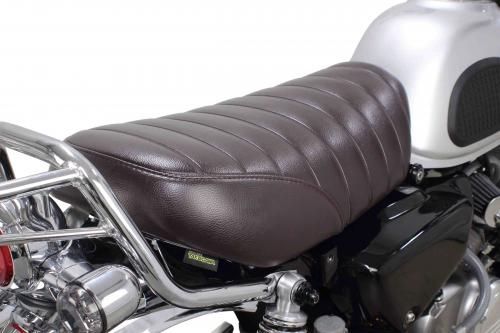 シートベースから製作したSP武川社オリジナル製品で、全体をコンパクトにまとめ、ノーマルはもちろん、様々なカスタムスタイルにコーディネート出来るデザインです。シートベースは樹脂製とすることで軽量化を実現。シート表皮には滑りにくい生地を採用し、ホールド感を高めます。シートスポンジにはSP武川社オリジナルスーパーウレタンスポンジを採用し、ロースタイルシートでもクッション性を十分に確保しており、快適なライディングをお楽しみ頂けます。■取り付け方法取付けはノーマルシートを取外し、ノーマルステーを本製品に組付けることで、ノーマル同様に装着出来ます。■SP武川製同時装着可能パーツグラブバー(09-11-0218/09-11-0220)リアキャリア(09-11-0225)