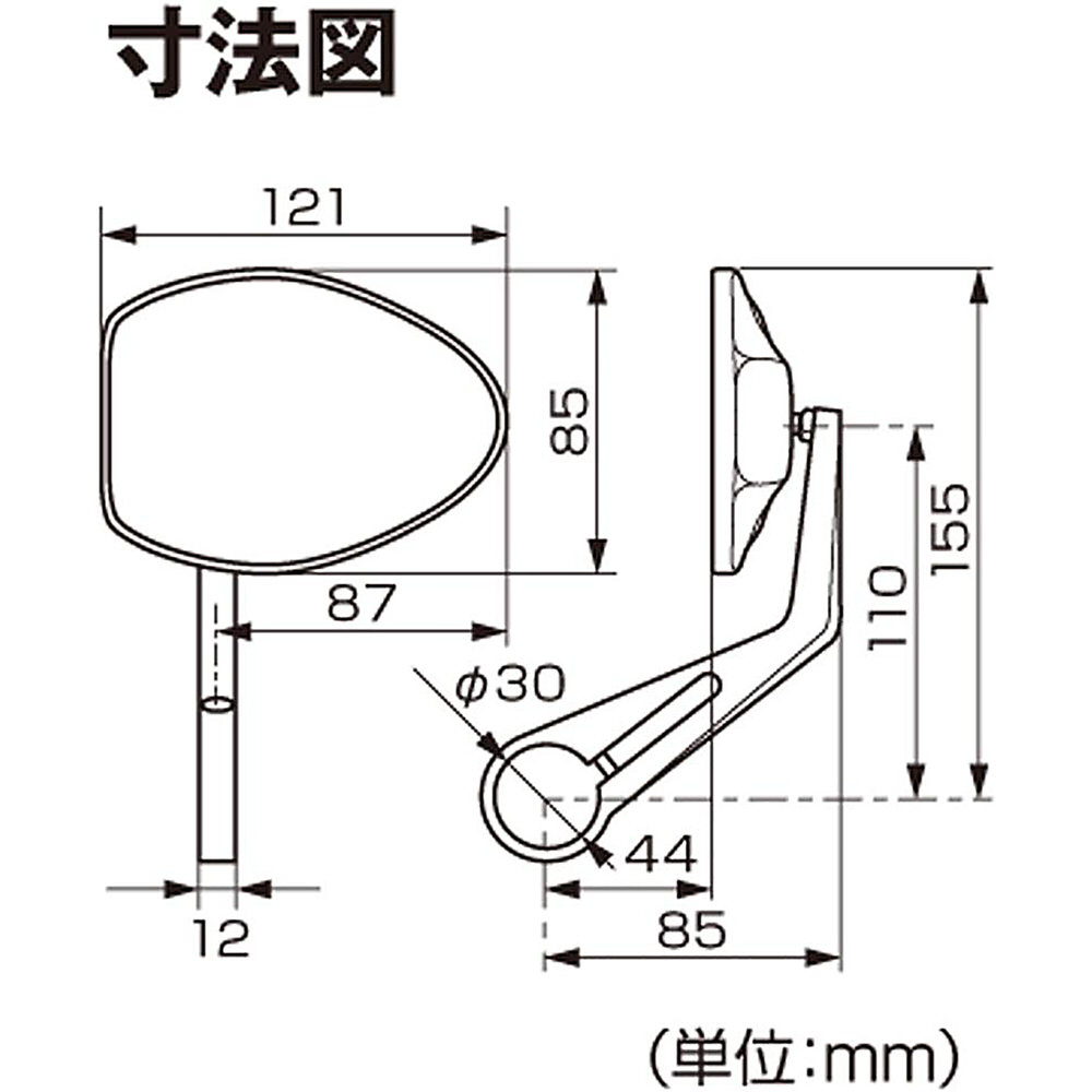 流線型ボディが軽快感をアピールするスポーティなデザイン。鏡面はクリアミラー左右共通で使用可能。材質:アルミ削り出しECE規格をクリアした認証番号付。★★別売バーエンドミラーアダプター必要※ハンドルを左右に切り車両やレバーに接触しないことを確認のうえ、ご使用ください。