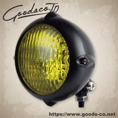 4インチビンテージスタイルリブヘッドライト ブラック イエローレンズ H4 GOODS(モーターガレージグッズ)