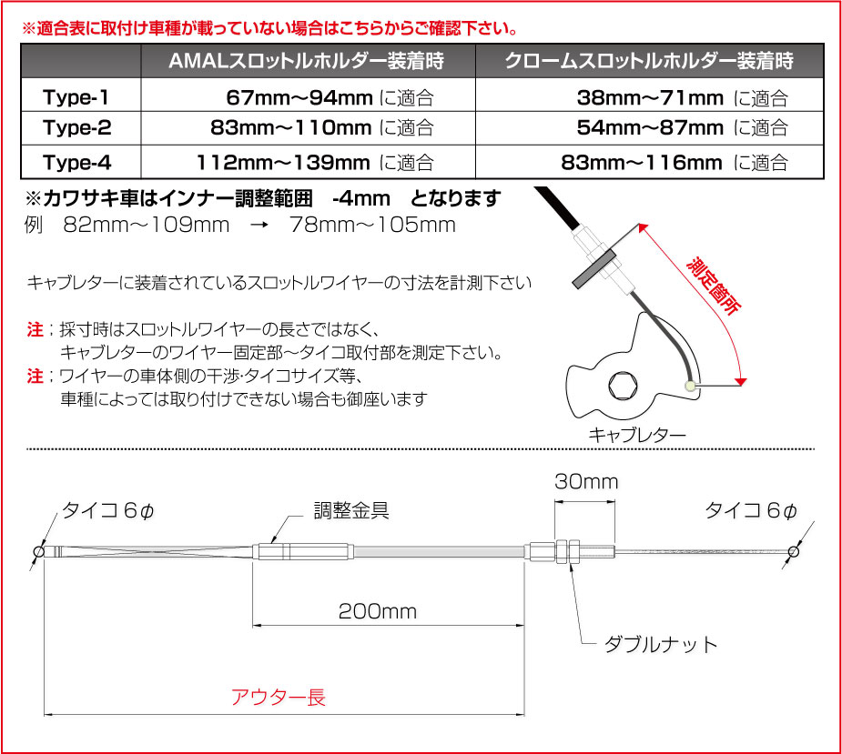 ※各車種純正と同じ長さのワイヤーは御座いませんので、少し余裕をみた長さをオススメ致します