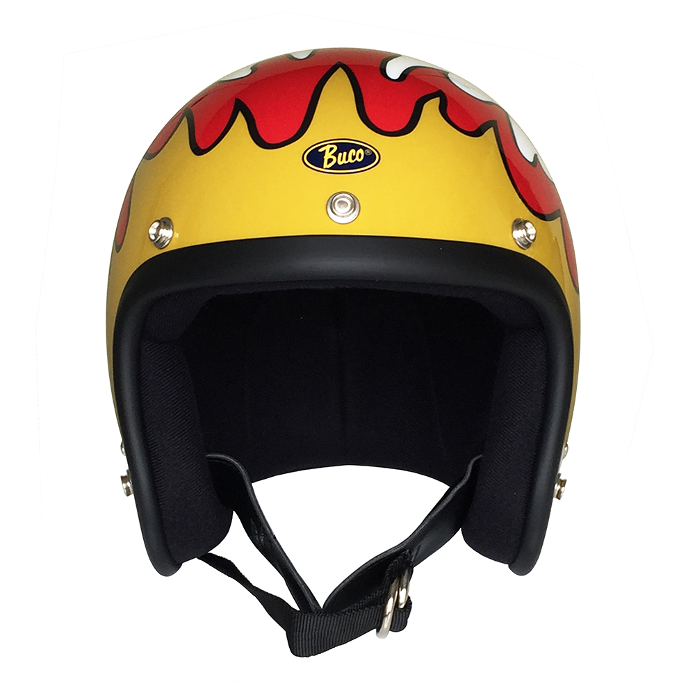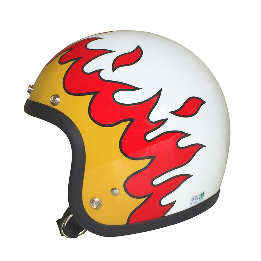 ビンテージヘルメットの専門書で紹介されている、無名のアーティストによる1950年代のカスタムペイントヘルメット。トイズマッコイが所蔵する同ビンテージの味わい深いフレアーペイントをアレンジを加えて再現しました。