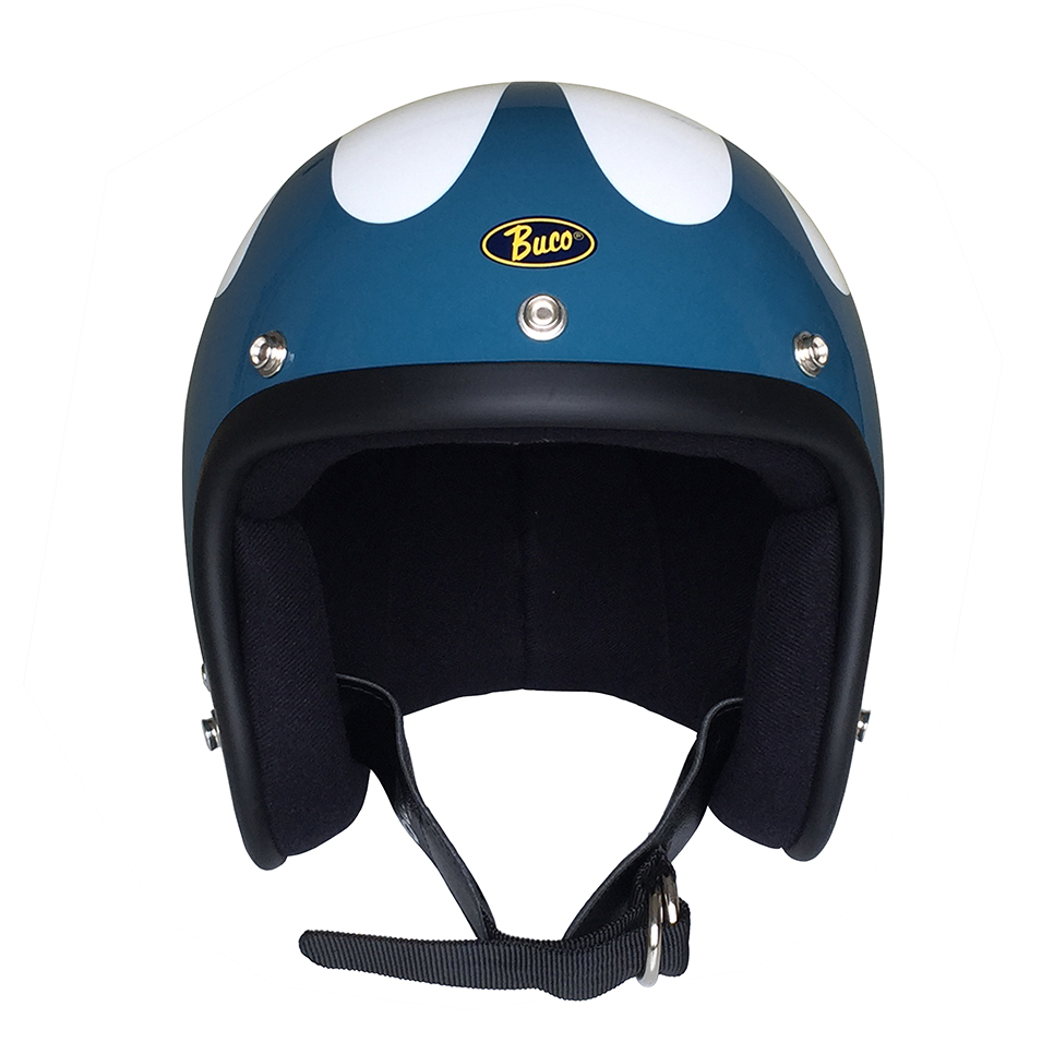 品名:ブコ スタンダード スキャロップカラー:ホワイト/ブルーサイズ:ブコ スタンダード L(60〜61cm)帽体:SG規格クルマのボディやバイクのガスタンクなど、ホットロッドマシンの定番グラフィック「スキャロップ」パターンをペイント。後方に流れていくラインが醸し出す疾走感は、風を切って走るモーターサイクルと絶妙なハーモニーを生み出します。