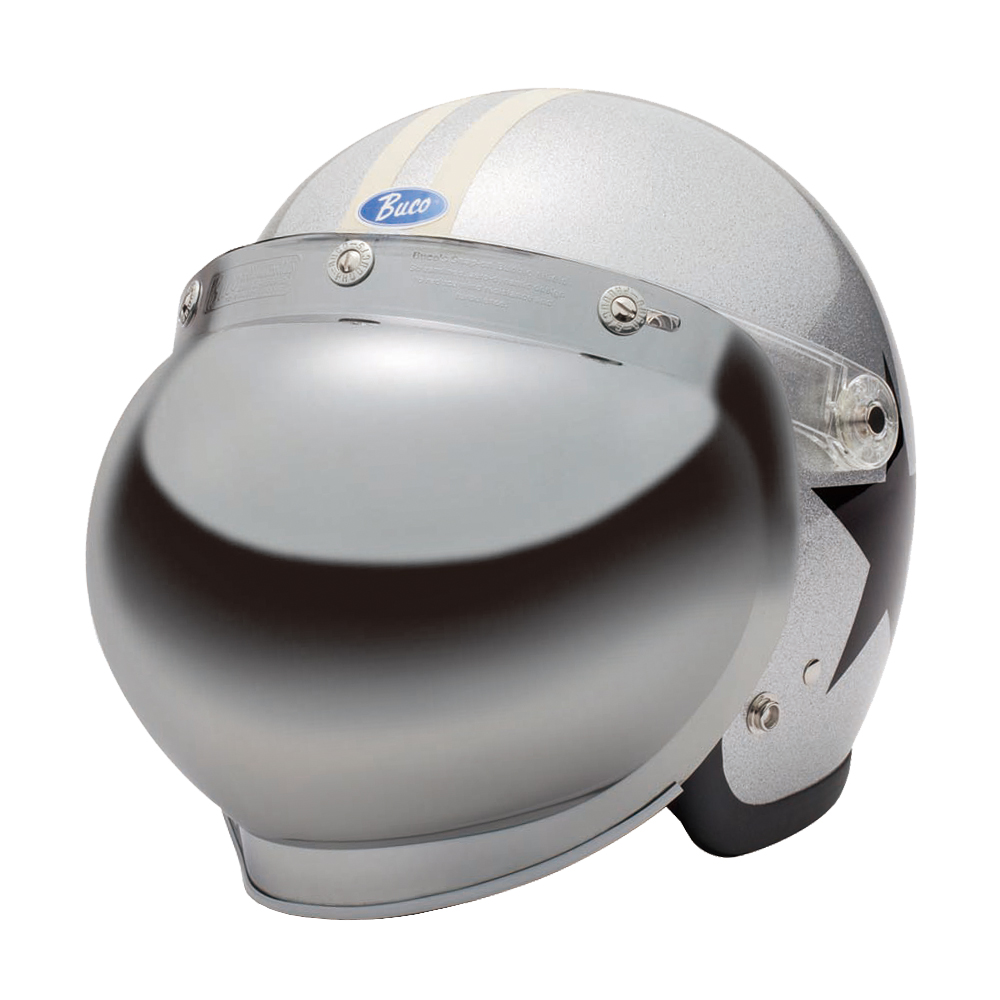 バブルシールド と シールドコンバーターのセット。 2つを専用ボルトで連結しているので、ボルトが確実にしまっている限りシールドがコンバーターから外れる心配はありません。また、ヘルメットとバブルシールドがより密着し、風の巻込みを軽減することに成功。専用ボルトで連結することにより見た目にもスマートなシルエットとなり、開閉の際の動きもスムーズかつ確実なものとなりました。本製品のために新造した連結用のワッシャーには〈BUCO PRODUCTS〉の刻印入り。※ボルトの緩みにご注意ください。※シールドコンバーターとヘルメットはホック固定です。確実に固定してご使用ください。※新開発のボルト式のため、スナップオン(ボタン式) バブルシールド と BUCO シールドコンバーター(単品) との互換性はございません。ご注意ください!!【注意事項】専用ボルトには2種類の長さがあります。長い方はセンター用、短い方は両サイド用となります。ボルトオン・バブルシールドをシールドコンバーターに固定する際に、専用ボルトの締め過ぎにご注意ください。強く締め過ぎますと、ボルトオン・バブルシールド及びシールドコンバーターを破損する恐れがあります。また、ご使用中に専用ボルトが緩んできた場合、緩んだままにしておきますとスムーズな開閉ができないだけでなく、シールドが外れることがありますので、専用ボルトの緩みにご注意ください。