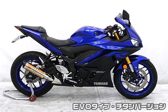 新時代から導き出された究極のイノベーションデザインで非常にインパクトあるマフラーです。サイレンサーは【 チタンバージョン 】です。チタンバージョンは軽量高剛性なチタニウム製パイプにレインボーの焼き色を付けた、非常に高級感の高い仕上がりです。アルミ素材から削り出したビレットタイプのエンドに、ブラックアルマイト処理を施した【 EVOタイプ 】消音用のバッフルが2個装備されている【 ダブルバッフル仕様 】となっており、バッフル無し、バッフル1個装着、バッフル2個装着と3種類の排気音を選べるサウンドセレクトスタイルになっています。バッフルはSUS304ステンレスタイプ(EVOタイプはプレートタイプ)とアルミタイプの2種類のバッフルが装備されています。音量はバッフル2個装着時の排気音量が 約86db(約87db)(法定規制値内音量)、バッフル1個装着時の排気音量が 約88db(約89db)、バッフル非装着時の排気音量が 約90db(約92db) です。※( )内の音量はYZF-R3です。音質も耳障りな音でなく重低音のサウンドになっていますので、ノーマルマフラーではちょっと物足りない方にオススメです。サイレンサーはストレート構造ではなく隔壁構造になっていますので、音量は静かめに抑えられており近所迷惑になる事無く安心して走行できます。低中速を落とすことなく高回転でスムーズに回り扱いやすい設定になっています。振動防止のためサイレンサーとエキパイが2分割となる安心設計になっています。サイレンサーは、2点止めになっていますのでしっかりと固定でき、耐久性にも優れています。無加工ボルトオンにて装着できますので、必要な工具があれば簡単に取り付けできます。(取り付けに必要なボルト類は全て付属しております。)テールパイプとエキパイとの接続部分を隠し、空力性能を向上させる ヒートガード を 標準装備 しております。ポリッシュ仕上げ です。※ヒートガードはノーマルカウル装着車のみ適合します。サイレンサーバンドにはスリットタイプを採用してデザインにもこだわっています。サイレンサーの固定にはサイレンサーバンドを採用し、バフ仕上げを施したSUS304ステンレス製丸棒で組んだステーを介して固定しておりますので、従来のステーの固定より車体と調和した高級感あふれるマフラーです。某有名マフラーメーカーの製作になりますので、低価格ながら完成度は非常に高い作りになっています。SUS304ステンレス製で、エキパイからサイレンサーまでバフ仕上げを施しています。注意※サイレンサー部分だけ取り替えるスリップオンタイプの商品です。フルエキゾーストタイプのマフラーではありませんのでご注意ください。※平成22年4月1日より施行された認証制度に適合する認証マフラーではありません。ご理解の程よろしくお願い致します。※ヒートガードはポリッシュ仕上げとブラック仕上げで選択できます。