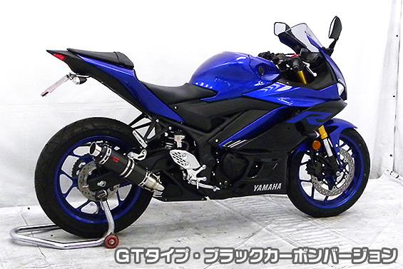 新時代から導き出された究極のイノベーションデザインで非常にインパクトあるマフラーです。サイレンサーは【 ブラックカーボンバージョン 】です。ブラックカーボンバージョンは、SUS304ステンレスサイレンサーにカーボンシートを巻いた仕様で、耐久性が抜群に高い構造を採用しています。EVOタイプ同様のブラックアルマイト処理を施したビレットタイプのテールマウントに、シンプルかつレーシーなイメージの【 GTタイプ 】消音用のバッフルが2個装備されている【 ダブルバッフル仕様 】となっており、バッフル無し、バッフル1個装着、バッフル2個装着と3種類の排気音を選べるサウンドセレクトスタイルになっています。バッフルはSUS304ステンレスタイプ(EVOタイプはプレートタイプ)とアルミタイプの2種類のバッフルが装備されています。音量はバッフル2個装着時の排気音量が 約86db(約87db)(法定規制値内音量)、バッフル1個装着時の排気音量が 約88db(約89db)、バッフル非装着時の排気音量が 約90db(約92db) です。※( )内の音量はYZF-R3です。音質も耳障りな音でなく重低音のサウンドになっていますので、ノーマルマフラーではちょっと物足りない方にオススメです。サイレンサーはストレート構造ではなく隔壁構造になっていますので、音量は静かめに抑えられており近所迷惑になる事無く安心して走行できます。低中速を落とすことなく高回転でスムーズに回り扱いやすい設定になっています。振動防止のためサイレンサーとエキパイが2分割となる安心設計になっています。サイレンサーは、2点止めになっていますのでしっかりと固定でき、耐久性にも優れています。無加工ボルトオンにて装着できますので、必要な工具があれば簡単に取り付けできます。(取り付けに必要なボルト類は全て付属しております。)テールパイプとエキパイとの接続部分を隠し、空力性能を向上させる ヒートガード を 標準装備 しております。ブラック仕上げ です。※ヒートガードはノーマルカウル装着車のみ適合します。サイレンサーバンドにはスリットタイプを採用してデザインにもこだわっています。サイレンサーの固定にはサイレンサーバンドを採用し、バフ仕上げを施したSUS304ステンレス製丸棒で組んだステーを介して固定しておりますので、従来のステーの固定より車体と調和した高級感あふれるマフラーです。某有名マフラーメーカーの製作になりますので、低価格ながら完成度は非常に高い作りになっています。SUS304ステンレス製で、エキパイからサイレンサーまでバフ仕上げを施しています。注意※サイレンサー部分だけ取り替えるスリップオンタイプの商品です。フルエキゾーストタイプのマフラーではありませんのでご注意ください。※平成22年4月1日より施行された認証制度に適合する認証マフラーではありません。ご理解の程よろしくお願い致します。※ヒートガードはポリッシュ仕上げとブラック仕上げで選択できます。