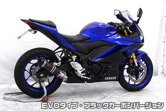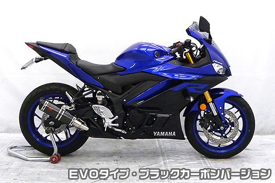 ※ヒートガードはポリッシュ仕上げとブラック仕上げで選択できます。本品はブラック仕上げです。新時代から導き出された究極のイノベーションデザインで非常にインパクトあるマフラーです。サイレンサーは【 ブラックカーボンバージョン 】です。ブラックカーボンバージョンは、SUS304ステンレスサイレンサーにカーボンシートを巻いた仕様で、耐久性が抜群に高い構造を採用しています。アルミ素材から削り出したビレットタイプのエンドに、ブラックアルマイト処理を施した【 EVOタイプ 】消音用のバッフルが2個装備されている【 ダブルバッフル仕様 】となっており、バッフル無し、バッフル1個装着、バッフル2個装着と3種類の排気音を選べるサウンドセレクトスタイルになっています。バッフルはSUS304ステンレスタイプ(EVOタイプはプレートタイプ)とアルミタイプの2種類のバッフルが装備されています。音量はバッフル2個装着時の排気音量が 約86db(約87db)(法定規制値内音量)、バッフル1個装着時の排気音量が 約88db(約89db)、バッフル非装着時の排気音量が 約90db(約92db) です。※( )内の音量はYZF-R3です。音質も耳障りな音でなく重低音のサウンドになっていますので、ノーマルマフラーではちょっと物足りない方にオススメです。サイレンサーはストレート構造ではなく隔壁構造になっていますので、音量は静かめに抑えられており近所迷惑になる事無く安心して走行できます。低中速を落とすことなく高回転でスムーズに回り扱いやすい設定になっています。振動防止のためサイレンサーとエキパイが2分割となる安心設計になっています。サイレンサーは、2点止めになっていますのでしっかりと固定でき、耐久性にも優れています。無加工ボルトオンにて装着できますので、必要な工具があれば簡単に取り付けできます。(取り付けに必要なボルト類は全て付属しております。)テールパイプとエキパイとの接続部分を隠し、空力性能を向上させる ヒートガード を 標準装備 しております。ブラック仕上げ です。※ヒートガードはノーマルカウル装着車のみ適合します。サイレンサーバンドにはスリットタイプを採用してデザインにもこだわっています。サイレンサーの固定にはサイレンサーバンドを採用し、バフ仕上げを施したSUS304ステンレス製丸棒で組んだステーを介して固定しておりますので、従来のステーの固定より車体と調和した高級感あふれるマフラーです。某有名マフラーメーカーの製作になりますので、低価格ながら完成度は非常に高い作りになっています。SUS304ステンレス製で、エキパイからサイレンサーまでバフ仕上げを施しています。注意※サイレンサー部分だけ取り替えるスリップオンタイプの商品です。フルエキゾーストタイプのマフラーではありませんのでご注意ください。※平成22年4月1日より施行された認証制度に適合する認証マフラーではありません。ご理解の程よろしくお願い致します。※ヒートガードはポリッシュ仕上げとブラック仕上げで選択できます。