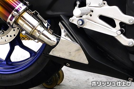 テールパイプとエキパイとの接続部分を隠し、空力性能を向上させます。他社製マフラーにも適合する様、クリアランスは大きめに設定しています。※他社製マフラーとの適合確認はしておりません。製品の形状によっては組み合わせての装着が出来ない場合がありますのでご了承下さい。ポリッシュ仕上げ と ブラック仕上げ の 2タイプ をご用意しておりますので、お好みでお選び下さい。取り付けは加工の必要なく、上下2点ボルト止めで簡単に装着できます。耐久性、耐腐食性の高いSUS304ステンレス製です。注意※ヒートガードはノーマルカウル装着車のみ適合します。※装着見本画像は、JBK-RG10J、EBL-RH07Jです。
