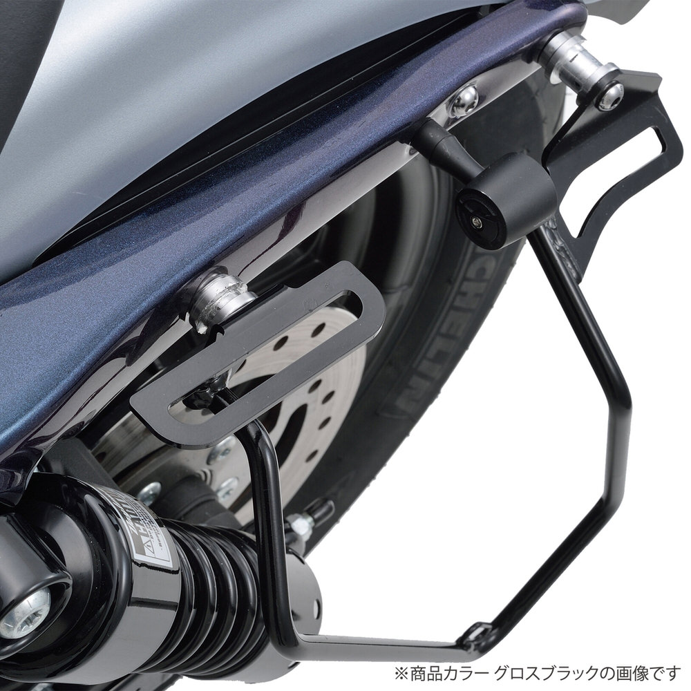 LINKING RACKとの同時使用可能な新設計サドルバッグサポート。バッグの巻き込みを抑止するサポート機能とバッグをつるすハンガー機能が一つでまかなえるサポートセット。純正ドッキングハードウェア装着車両にも使用可能です。サドルバッグサポートのみ必要な方向けの単品取付用部品がセットになった片側販売。左用サドルバッグサポート