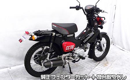 ハードにリアタイヤを露出させたい方にお勧めなアイテムです。装着によりリア周りの雰囲気がガラッと変わります。純正テールランプユニットを取り外して装着する商品です。純正の荷台に干渉せず装着できます。純正リアフェンダーをお好みの位置でカットして装着する事も可能です。純正リアフェンダーは柔らかい樹脂で成型されていますので、大きめのハサミで綺麗に簡単にカットできます。純正リアフェンダー、荷台を取り外して装着する事も可能です。テールランプはLED式キャッツアイテールランプを採用しています。配線は純正と同じカプラーになっていますので、差し替えるだけで簡単に繋げます。純正ウインカーをそのまま流用できるようになっております。リフレクター(反射板)も標準装備しています。取り付けのため他に用意するパーツ等はありません。取り付けに必要なボルトナット類も付属しており、無加工で取り付けできます。金属部分は耐久性、耐腐食性の高いステンレス製で鏡面バフ仕上げです。注意弊社フェンダーレスキットは、長い純正フェンダー(泥よけ)を取り外すことにより、すっきりとしたリア周りに仕上げることを目的とした商品です。またリア周りのメンテナンスやレース等の使用における空気抵抗を抑える理由から、弊社製品はナンバープレートホルダーの角度を変更することができる設計になっています。しかし、道路交通法の保安基準ではリフレクター(反射板)の装着義務やナンバープレートの角度を約45度以内(後方からナンバープレートを目視で確認できる角度)とすることが定められております。弊社製品は仕様としてナンバープレートホルダーの角度調節することは可能ですが、一般公道等の道路交通法を遵守しなければならない道路では保安基準を超えた角度(正確に目視できない角度)での製品の使用は法律で禁じられておりますので絶対におやめください。
