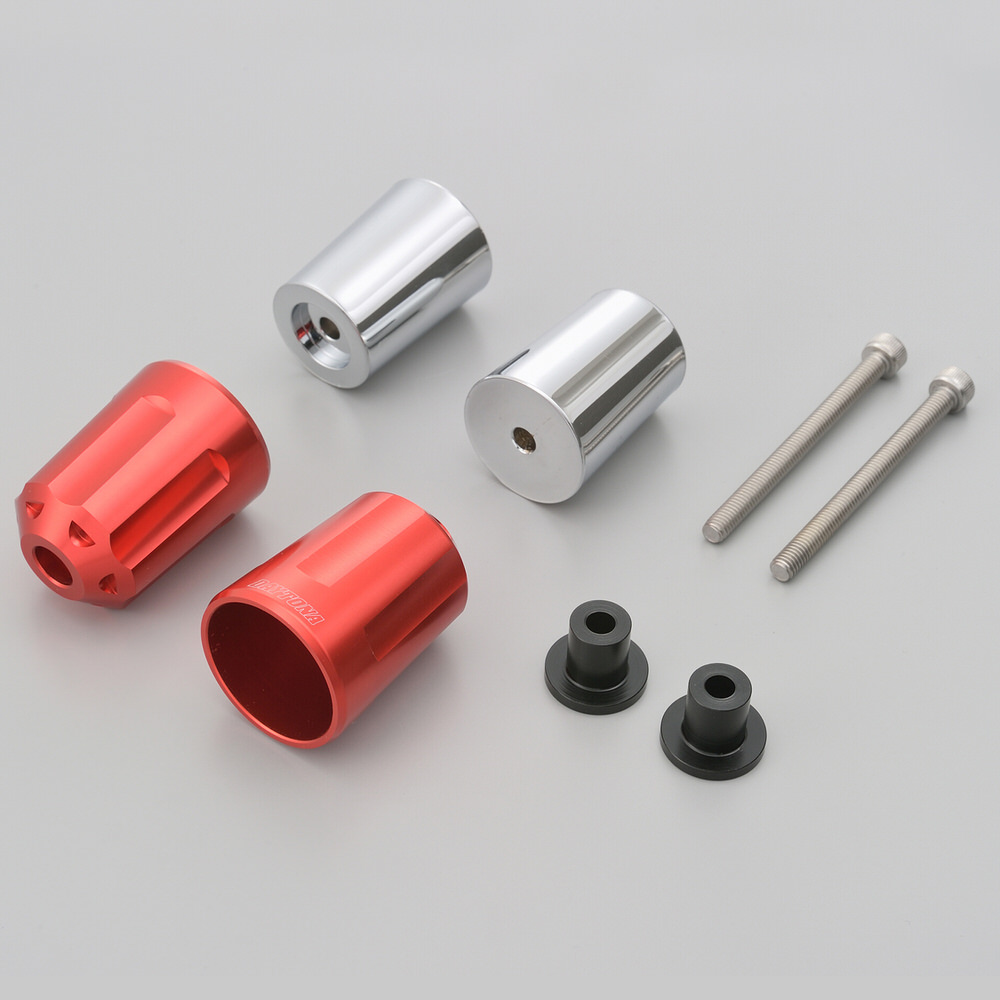 ハンドルの振動を低減するヘビーウエイトバーエンドに各メーカーの純正ハンドル用をご用意しました。真鍮製の防振ウエイトを内蔵したバーエンド。純正のバーエンドと付け替えるだけで簡単にドレスアップ。外側はアルミ削り出しアルマイト仕上げになっています。重量:約325g/片側左右セットレッド※デイトナ社確認車両表内の車種であっても、ハンドル幅(車体最大幅)が変更になるため、記載変更が必要となる場合があります。※各品番に記載された片側重量は、片側キット(ボルト類を含む)の重量です。【適合参考車両】Ninja H2SX(18〜19年)Ninja H2SXSE(18〜19年)Ninja H2SXSE+(19年)Ninja650(16〜19年)Z650(17〜19年)Ninja250SL(15〜16年)