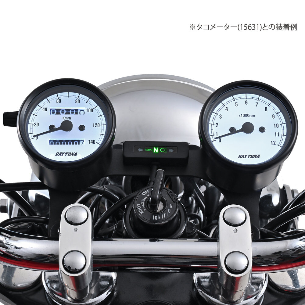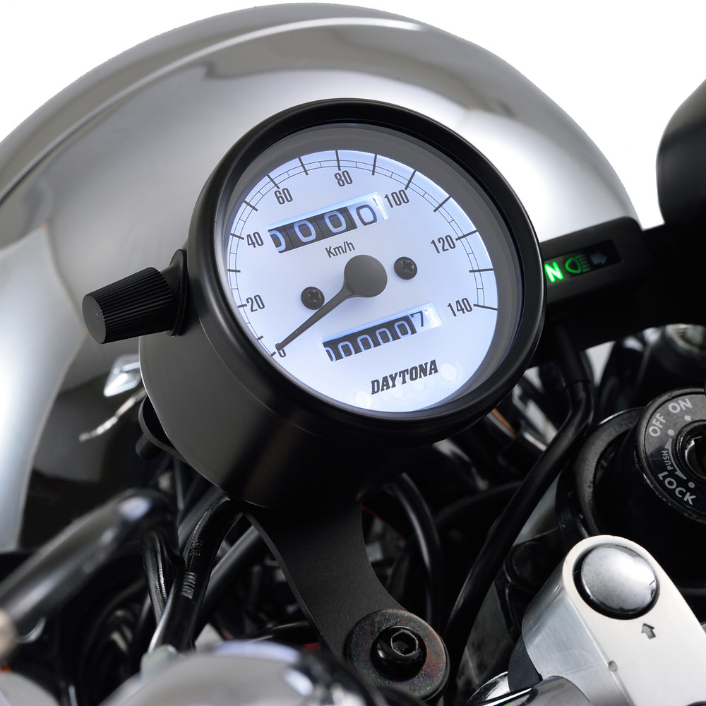 機械式スピードメーター φ60 ホワイトLED照明 140km/h ブラックボディ ホワイトパネル DAYTONA(デイトナ)