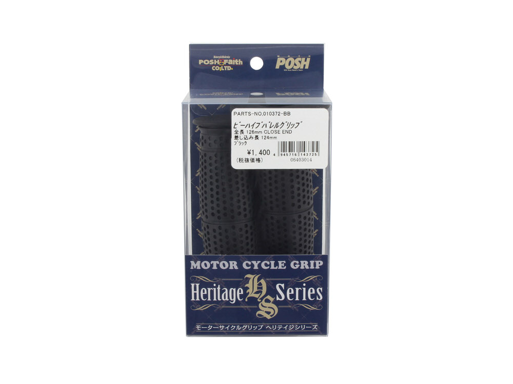 モーターサイクルグリップ ヘルテイジシリーズ ビーハイブバレルタイプ!!ゴルフクラブのグリップ等に使用されているTPR(サーモプラスチックラバー)を使用したグリップです。手になじみやすく、表面硬化、劣化がしにくく摩耗しにくい素材となっております。【仕様】22.2mmハンドル用全長:126mm差し込み長:124mmCLOSE END(非貫通タイプ)左右セット