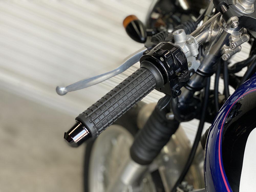 モーターサイクルグリップ ヘルテイジシリーズ ガンタイプ!!ゴルフクラブのグリップ等に使用されているTPR(サーモプラスチックラバー)を使用したグリップです。手になじみやすく、表面硬化、劣化がしにくく摩耗しにくい素材となっております。【仕様】22.2mmハンドル用全長:124mmOPEN END(貫通タイプ)左右セット
