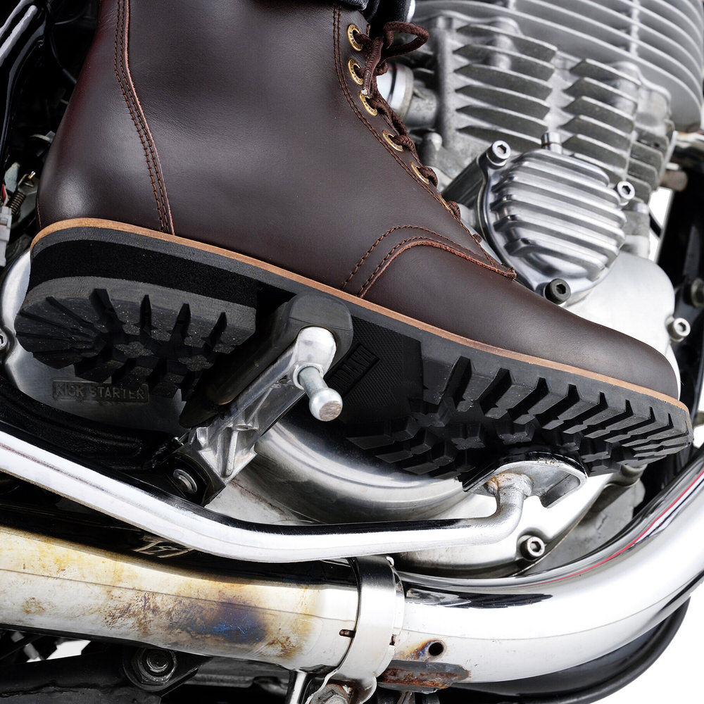 オーソドックスなデザインに、モーターサイクル用として必要な機能をつめ込んだライディングブーツ。ダークブラウンはハトメなどにシックなアンティークブラウンの金具を採用。靴の雰囲気を左右するウェルトも革製にしました。レースアップでオーソドックスなデザインのショートブーツ。レザーの色に合わせたシューレースカラーでシックな見た目に。カラー:ダークブラウンサイズ:23.5cm ※レディースサイズシフトパッド内蔵サイドジップタイプ素材:ア ッパー部分:牛革、内装:ポリエステル、ソール部分:合成ラバー※防水性ありません。