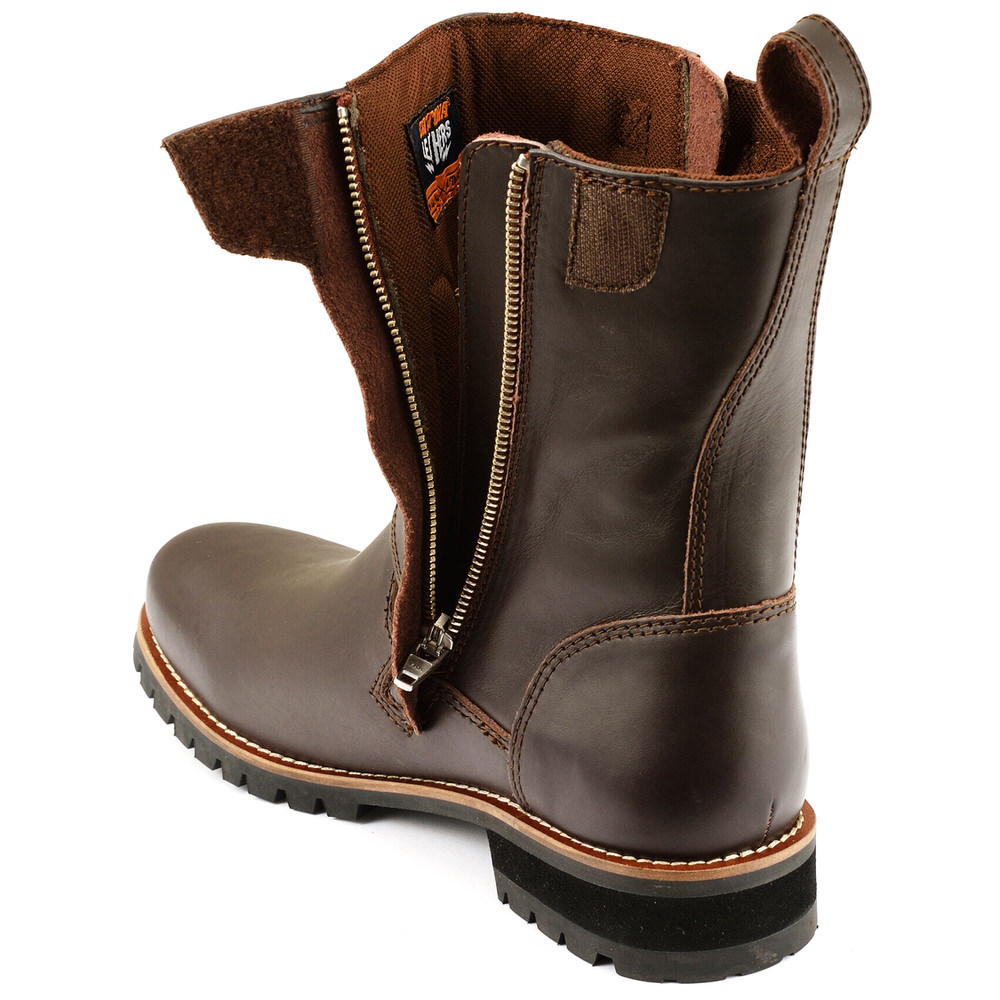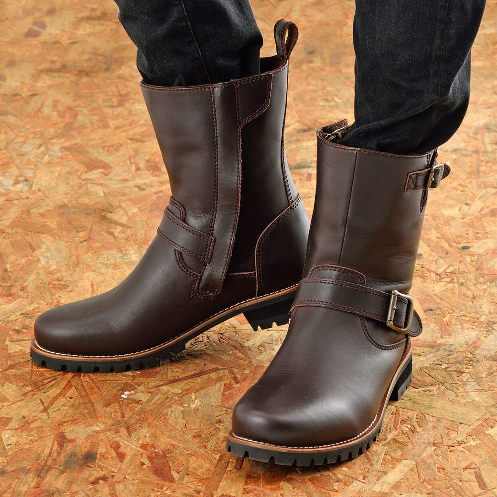 オーソドックスなデザインに、モーターサイクル用として必要な機能をつめ込んだライディングブーツ。ダークブラウンはハトメなどにシックなアンティークブラウンの金具を採用。靴の雰囲気を左右するウェルトも革製にしました。レザーブーツの王道デザイン。ミドル丈のエンジニアタイプ。カラー:ダークブラウンサイズ:24.5cm ※レディースサイズシフトパッド内蔵サイドジップタイプ素材:ア ッパー部分:牛革、内装:ポリエステル、ソール部分:合成ラバー※防水性ありません。