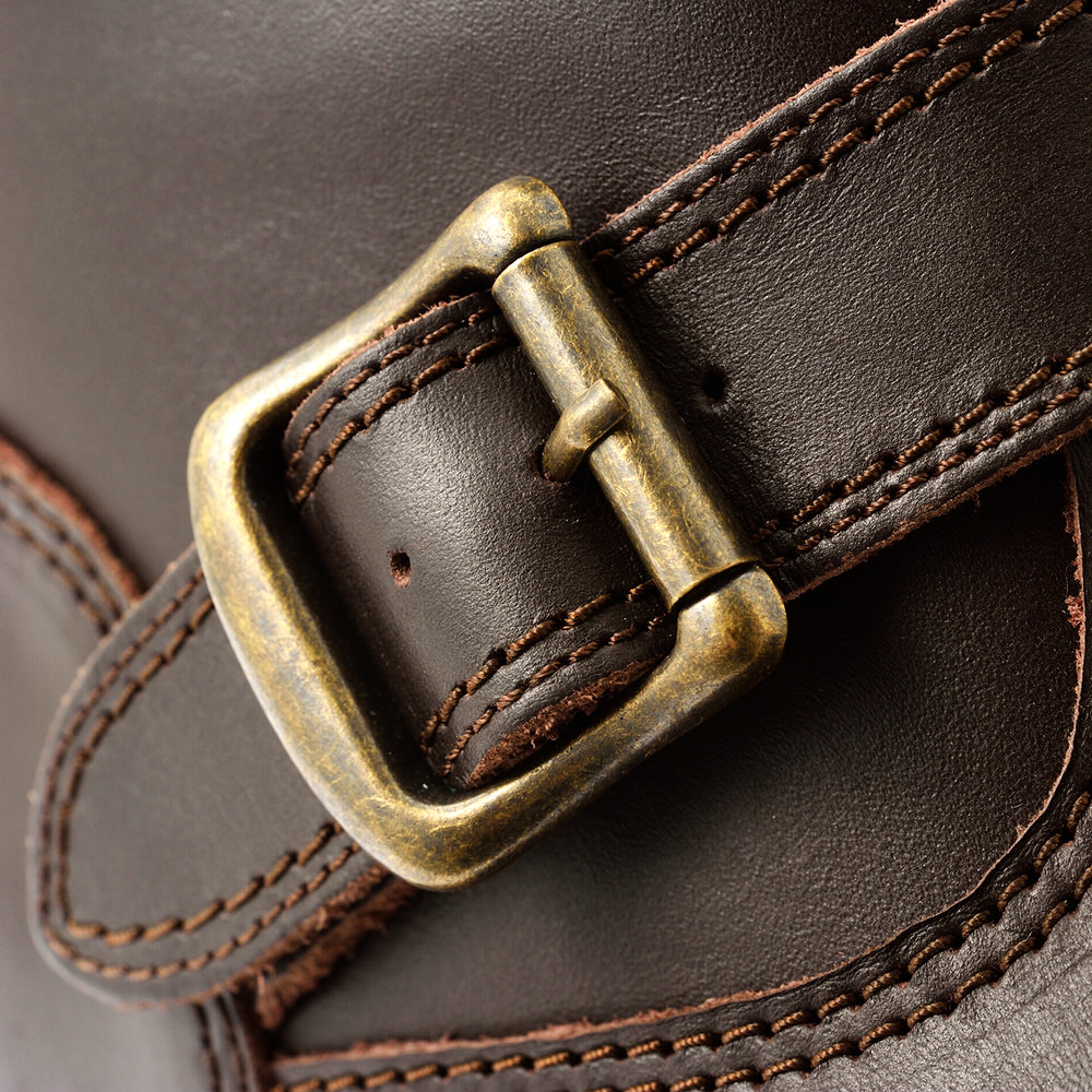 オーソドックスなデザインに、モーターサイクル用として必要な機能をつめ込んだライディングブーツ。ダークブラウンはハトメなどにシックなアンティークブラウンの金具を採用。靴の雰囲気を左右するウェルトも革製にしました。レザーブーツの王道デザイン。ミドル丈のエンジニアタイプ。カラー:ダークブラウンサイズ:25.5cmシフトパッド内蔵サイドジップタイプ素材:ア ッパー部分:牛革、内装:ポリエステル、ソール部分:合成ラバー※防水性ありません。