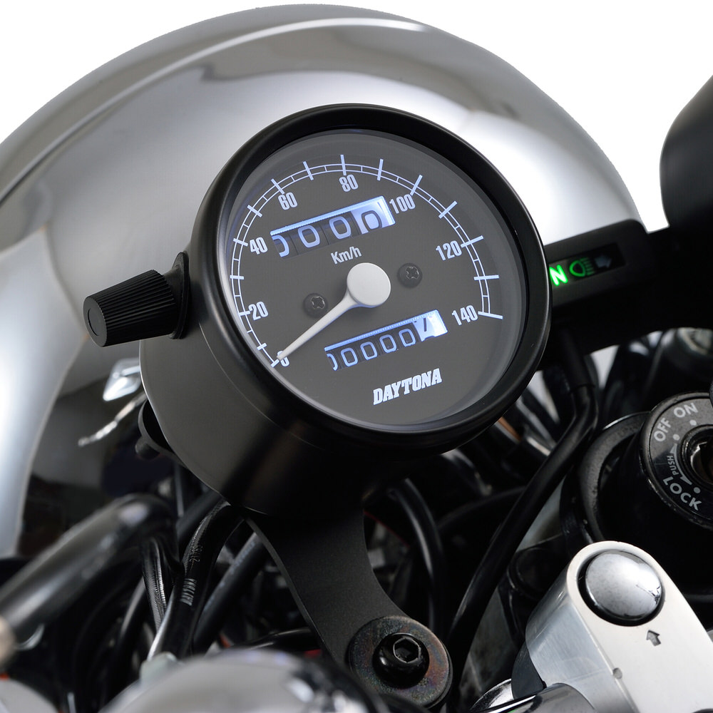 機械式スピードメーター φ60 ホワイトLED照明 140km/h ブラックボディ ブラックパネル DAYTONA(デイトナ)
